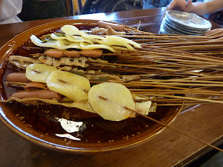 For dinner, we walked to a nearby eatery. A small restaurant that has bowls of cooked food dipped in chilli soup. Not spicy. But then, I only tried one stick. It cost only RMB0.50. Very cheap. It tasted sweet. I dare not try more, as I do not want to risk a stomachache, and definitely not one in the train!