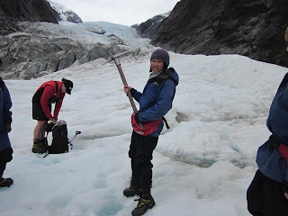 Then, before we ventured further to the glacier, the lady guide explained to us on how to use the crampons. The crampons are actually kept in the red pouch. It's not used to walk on stones. Just ice. The crampons can be worn on any kind of boots.