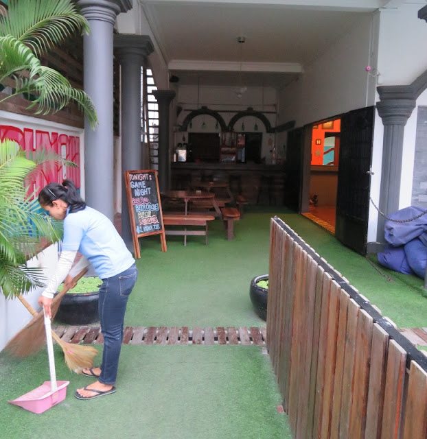 We arrived at the hostel about 6.15am and the guard let us sleep by the pool. He took out the mattress and let us lie on it. It was a warm morning. We lay till the sun rose. This time, I got some clear photos taken. Mad Monkey Hostel Phnom Penh has 2 buildings which is across the road from each other. The restaurant, some rooms and bar are located in another building. The reception, swimming pool and some rooms are in the main building.